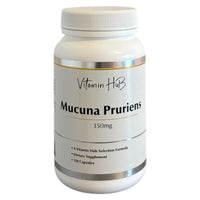Varje flaska Mucuna Pruriens från Vitamin Hub innehåller 120 kapslar med en styrka på 350 mg per kapsel. kapsel.